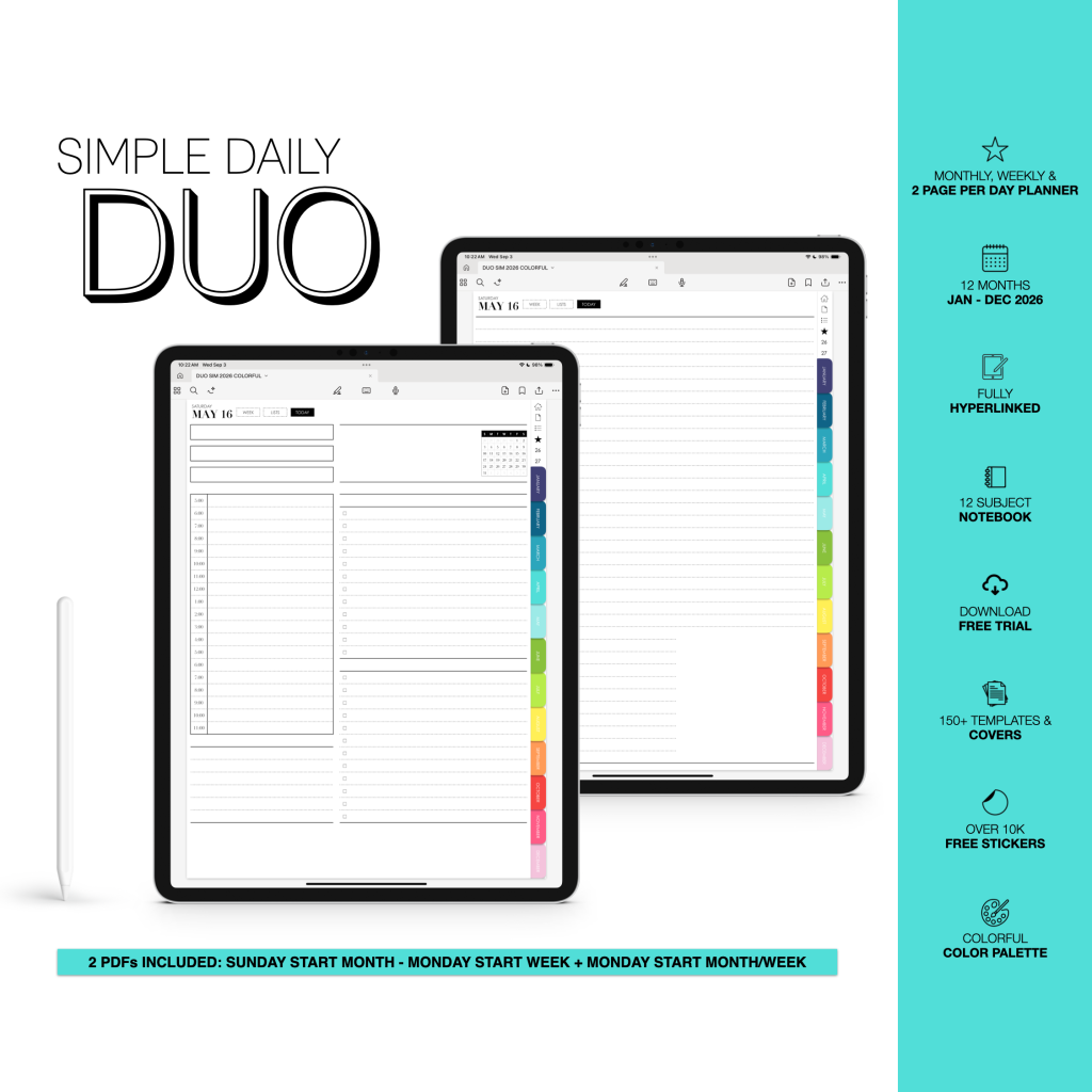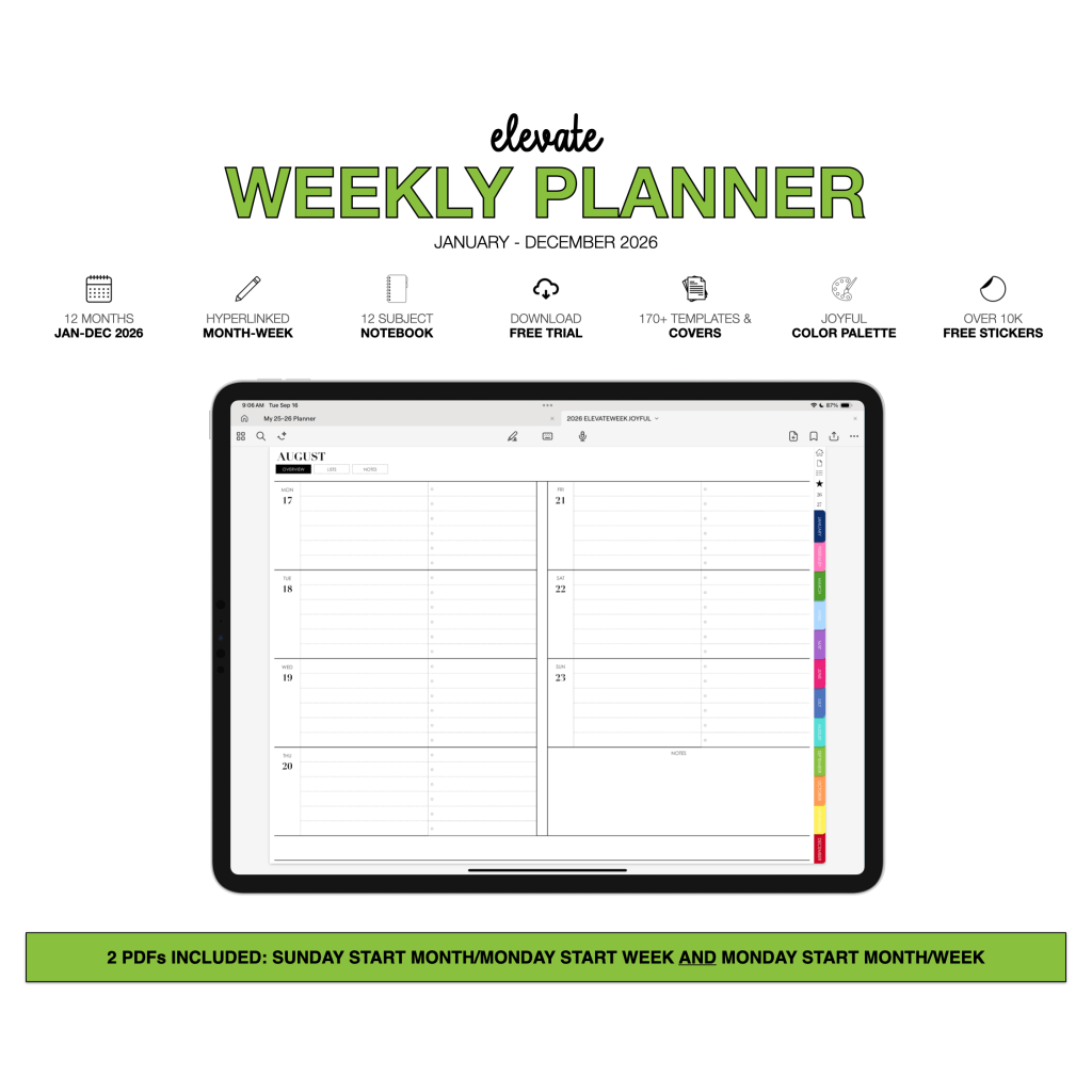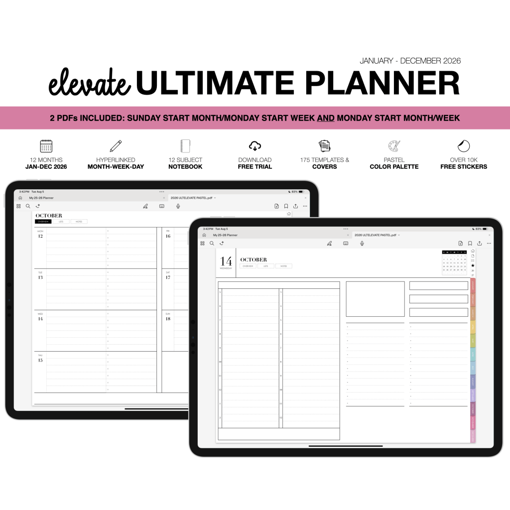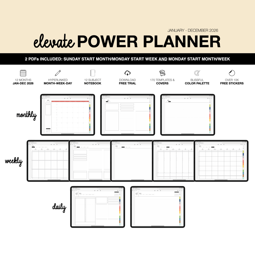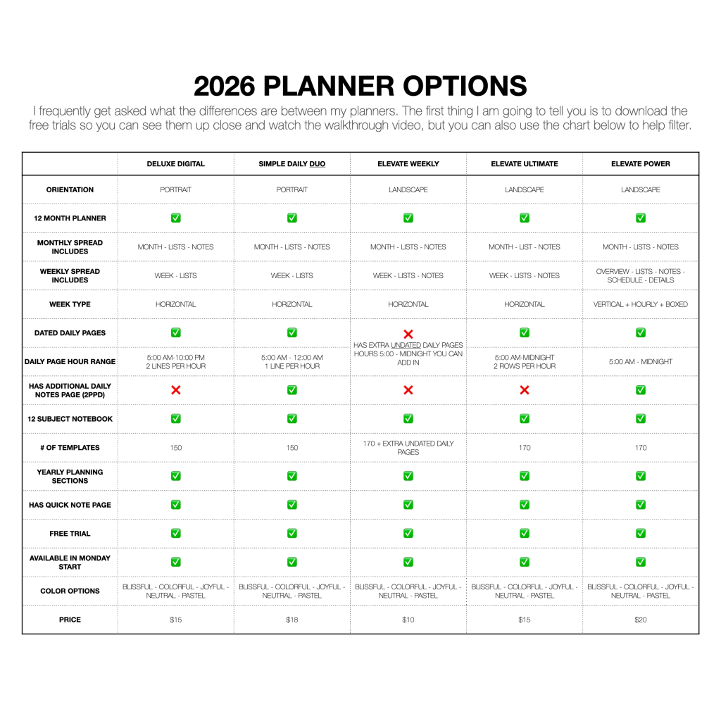 My 2026 Digital Planners run January-December and all include a 12 subject digital notebook. I offer planners in portrait and landscape, with flexible layouts for both the power user, light user and everyone in between.